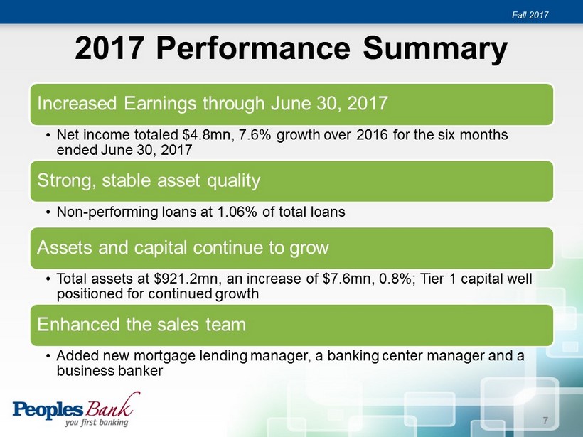 2017 PERFORMANCE SUMMARY Fall 2017 6