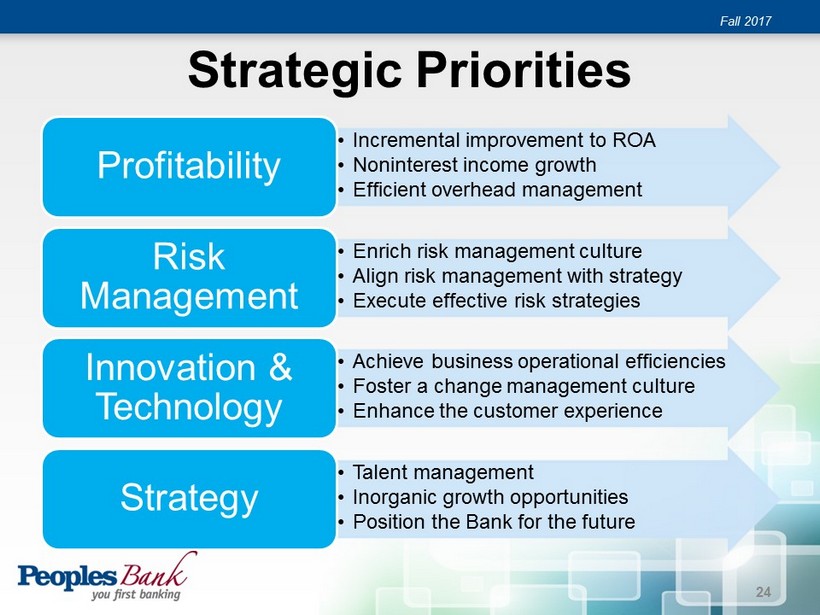 Peoples Banking Center Network Fall 2017 16 full - service banking centers Focused on Strategic Growth • Well positioned to capture projected population growth • Strong potential in existing footprint • Active plans to enhance Porter County market presence 23