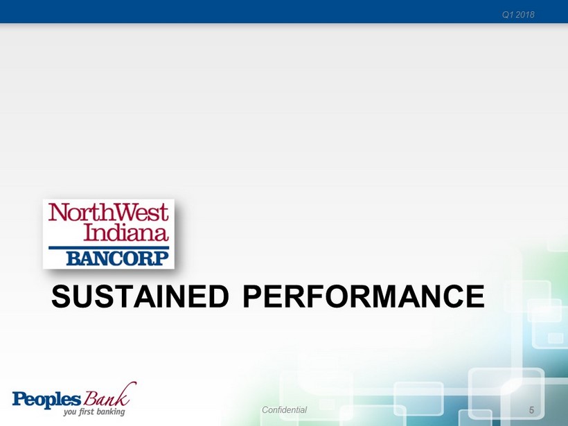 Additional Information For Shareholders In connection with the proposed merger, NorthWest Indiana Bancorp (“NWIN”) will file with the SEC a Registration Statement on Form S - 4 that will include a Proxy Statement of First Personal Financial and a Prospectus of NWIN (the “proxy statement/prospectus”) as well as other relevant documents concerning the proposed transaction. SHAREHOLDERS AND INVESTORS ARE URGED TO READ THE REGISTRATION STATEMENT AND THE PROXY STATEMENT/PROSPECTUS REGARDING THE MERGER WHEN IT BECOMES AVAILABLE AND ANY OTHER RELEVENT DOCUMENTS FILED WITH THE SEC, AS WELL AS ANY AMENDMENTS OR SUPPLEMENTS TO THOSE DOCUMENTS, BECAUSE THEY WILL CONTAIN IMPORTANT INFORMATION. The proxy statement/prospectus and other relevant materials (when they become available) and any other documents NWIN has filed with the SEC, may be obtained free of charge at the SEC’s website at www.sec.gov. In addition, investors and security holders may obtain free copies of the documents NWIN has filed with the SEC from NWIN at www.ibankpeoples.com in the link for “Investor Relations – SEC Filings - Documents.” Alternatively, these documents, when available, can be obtained free of charge from NWIN upon written request to NorthWest Indiana Bancorp, Attn: Corporate Secretary, 9204 Columbia Avenue, Munster, Indiana 46321. The information available through NWIN’s website is not and shall not be deemed part of this presentation or incorporated by reference into other filings NWIN makes with the SEC. This communication does not constitute an offer to sell or the solicitation of an offer to buy any securities or a solicitation of any vote or approval. NWIN and First Personal and certain of their respective directors and executive officers may be deemed to be participants in the solicitation of proxies from the shareholders of First Personal in connection with the proposed merger. Information about the directors and executive officers of NWIN is set forth in NWIN’s Annual Report on Form 10 - K filed with the SEC on February 20, 2018, and in the proxy statement for NWIN’s 2018 annual meeting of shareholders, as filed with the SEC on March 12, 2018. Additional information regarding the interests of these participants in the transaction may be obtained by reading the proxy statement/prospectus regarding the proposed merger when it becomes available. Free copies of this document may be obtained as described in the preceding paragraph. Confidential Q1 2018 3