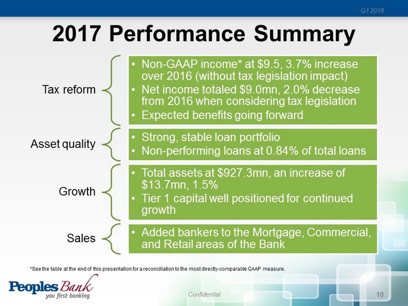 2017 PERFORMANCE SUMMARY Confidential Q1 2018 9